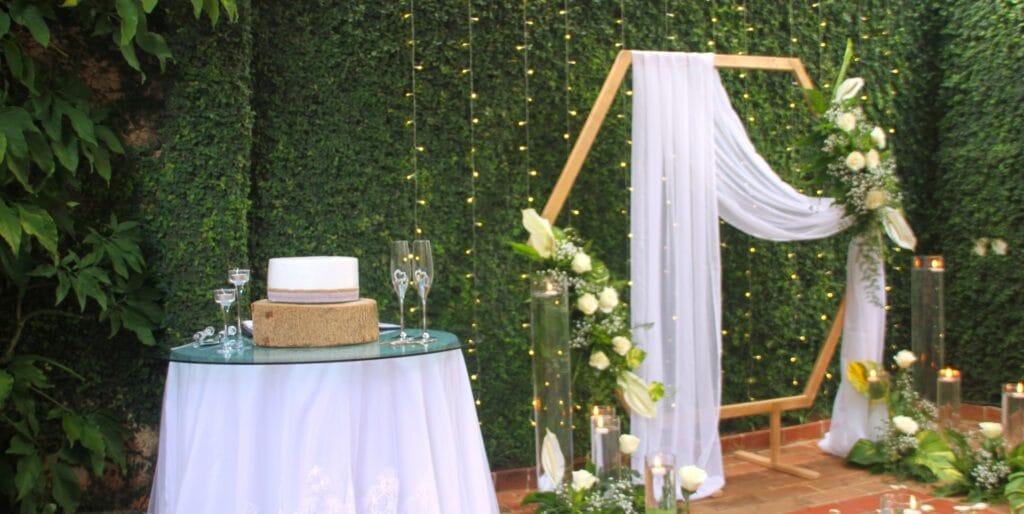 Desde esta histórica locación, se ofrecen paquetes integrales que facilitan la planificación, incluyendo elementos esenciales como decoración a medida, ceremonia en gazebo, servicio de catering gourmet, música, servicios profesionales de fotografía y video, audio, y una coordinación completa del evento. Con su atmósfera romántica y vistas privilegiadas, la terraza es perfectamente apta tanto para celebrar recepciones durante el atardecer como para organizar cenas de gala a la luz de las estrellas.
