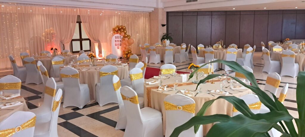 Simplifique su planificación. Podemos integrar el alquiler de su locación ideal en un paquete de bodas integral. Este incluye servicios esenciales como decoración personalizada, exquisito buffet, animación, fotografía profesional y video de alta calidad, entre otros.